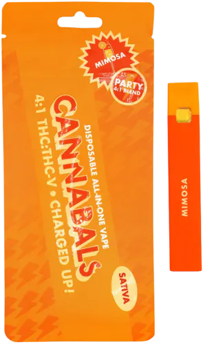 Energize your day with Cannabals Mimosa, a vibrant sativa all-in-one disposable vape. Formulated with a 4:1 THC to THCV ratio, this uplifting blend delivers a clear, focused high with a smooth, citrusy kick. Perfect for daytime use or night life, Mimosa enhances mood and motivation without the crash.