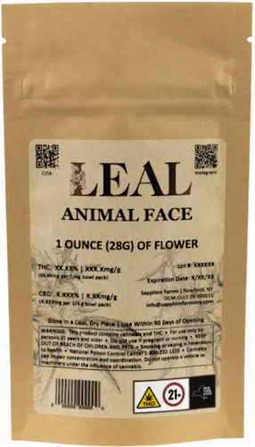 Animal Face is a hybrid strain made by crossing Face Off OG and Animal Mints. It takes the piney, gassy terpene profile and potent high from Face Off OG and pairs it with the cookie flavored smoothness of Animal Mints. Animal Face is known for giving a full mind and body-numbing high that lets you drift off into physical and mental bliss. Bred by the famed Seed Junky Genetics, Animal Face draws from some of the more famous California genetics, making it a great choice for anyone wanting to taste a bit of history.