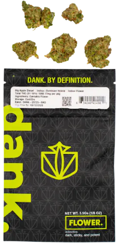 Big Apple Diesel is a robust indica leaning hybrid strain that captures the essence of New York City's energetic spirit combined with classic diesel potency. This metropolitan marvel delivers an immediate cerebral rush that awakens creativity and sharpens focus, much like the first morning light hitting Manhattan's skyline, before mellowing into a balanced body relaxation that soothes without slowing your pace. Big Apple Diesel features a complex flavor profile that blends sweet, crisp apple notes with the distinctive fuel undertones characteristic of its diesel heritage, creating an experience as diverse and dynamic as NYC itself. The aroma is equally impressive, with prominent diesel scents complemented by fresh apple sweetness and subtle earthy notes that intensify when the dense, resinous buds are broken apart. Whether you're tackling a busy day, seeking inspiration, or simply enjoying the city that never sleeps, Big Apple Diesel offers the perfect urban cultivation experience that stands tall like the Empire State itself.