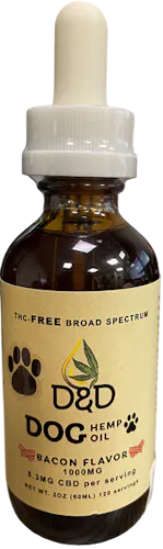 The D&D Bacon Flavored CBD Oil for Dogs is a veterinarian-approved, broad-spectrum hemp tincture crafted to support canine wellness with a blend of natural ingredients and a pet-friendly flavor profile. Each 1000mg, THC-free, 2oz bottle delivers 120 servings at 8.3mg per dose, formulated for quick absorption and designed to promote relaxation, joint comfort, and overall calm. Its savory bacon flavor makes it easy to mix into food, treats, or administer directly with the included dropper, helping dogs enjoy the benefits without resistance. With its focus on purity, safety, and effective dosing, D&D’s tincture provides a smooth, reliable way to enhance a dog’s comfort and quality of life.