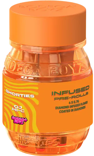 Indulge in a citrus explosion with OJ Hi-C Shorties – a zesty burst of sunshine and immerse yourself in the tangy sweetness of freshly squeezed orange juice, invigorating your senses with its vibrant flavor profile. Each joint is meticulously crafted with .7 grams of premium flower, infused with diamonds, and coated with premium Bodega Boyz thca diamonds, housed in a stylish barrel stash jar. Whether you’re starting your day on a high note or seeking a refreshing pick-me-up, OJ Hi-C Shorties offer a flavorful journey that’s as exhilarating as it is delicious. Get ready to awaken your taste buds and embrace the citrusy goodness of this iconic blend. Reusable ceramic tips make this experience hit different.