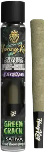 Honey King’s Green Crack pre-roll is built for smokers who want a fast-acting, high-energy sativa delivered in a potent, flavorful package. It starts with premium Green Crack flower, a classic Skunk-derived cultivar known for its sharp mental clarity and electric, daytime buzz. Honey King then boosts the intensity by infusing the pre-roll with crushed THCA diamonds and a dusting of kief, giving it a noticeably stronger punch and a smooth, resin-rich burn. The flavor leans tropical and citrusy, mixing bright mango, pineapple, and lemon notes with a subtle earthy finish that reflects its Skunk #1 × Afghani lineage. The result is a pre-roll that hits quickly, lifts mood, sharpens focus, and keeps the body light and active—ideal for creative sessions, outdoor plans, or anyone who prefers an energetic, uplifting smoke with a sweet, fruity edge.