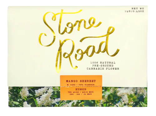 Stone Road’s Mango Sherbet is an indulgent, fruit-forward hybrid crafted from the flavorful trio of Mango Trees × Mango Kush × Sherbet. This strain stands out for its intensely tropical aroma—think ripe mango, sugared berries, and creamy sherbet—with subtle earthy undertones that give it depth. Mango Sherbet often begins with a bright, creative lift and sharpened focus before melting into a warm, full-body relaxation that can become heavy and dreamy as it settles in.