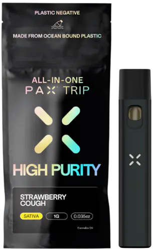 The High Purity Strawberry Cough All-In-One Vape is a sativa-leaning disposable designed for smooth, flavorful pulls and an energizing, clear-headed experience. According to PAX, this all-in-one device delivers the classic berry-sweet and floral profile that Strawberry Cough is famous for, offering a gentle, fruity inhale with a clean finish.