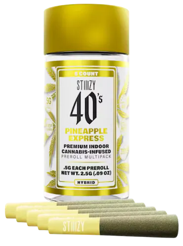 Elevate your pre-roll game. Stiiizy 40s pre-rolls are setting the standard with high potency, cannabis infused joints coated evenly with kief. Using our proprietary live resin infusion methods, we’ve designed every pre-roll to offer 40%+ THC potency with a unique flavor profile. With a smooth inhale and tasteful exhale, each and every Stiiizy 40 is packed with indoor grown flower, specifically made to ensure a potent and long-lasting high. Spark up the 40s.