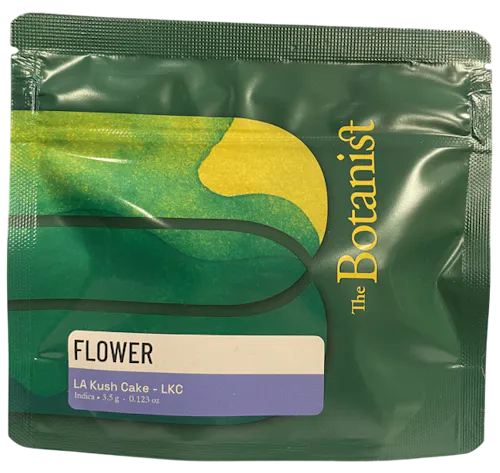 LA Kush Cake from The Botanist is a richly aromatic, evening-leaning strain known for its frosty, purple-tinted buds and a terpene profile that blends vanilla, berry sweetness, and sharp gas into a bold, layered experience. Its aroma is immediately striking—sweet and creamy at first, then shifting into a deeper fuel note that gives it a classic Kush edge. The flavor is thick and lingering, carrying that same vanilla-berry-gas combination with a smooth finish that coats the palate. Its effects often begin with a potent cerebral lift before settling into a deep, soothing body relaxation, making it well-suited for winding down in the evening or promoting sleep at higher doses.