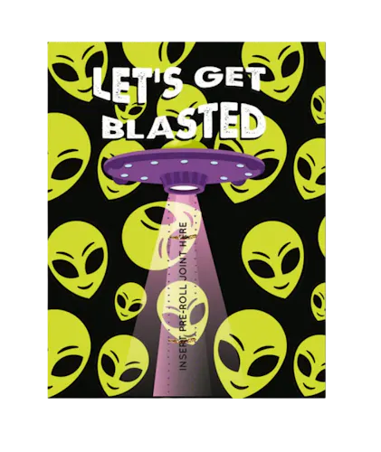Take your greetings to an out-of-this-world level with our "Let's Get Blasted" greeting card, perfect for those who love to add a fun and quirky twist to their special messages. This unique card features a playful design with cheerful green alien faces set against a sleek black background, instantly grabbing attention and sparking curiosity.