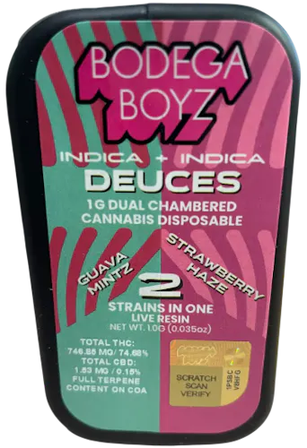 The Bodega Boyz Dual Chamber Guava Mintz × Strawberry Haze All-In-One Vape is designed as a flavorful, convenience-focused device that blends two distinct profiles in a single unit. One chamber delivers a cool, tropical Guava Mintz experience—typically described as sweet, juicy guava layered with a refreshing mint finish—while the other offers Strawberry Haze, a brighter, berry-forward flavor with a light, herbal edge. The overall effect is a smooth, aromatic draw that emphasizes fruit-heavy sweetness balanced by cooling or hazy undertones, making it appealing to people who enjoy variety in a single device.