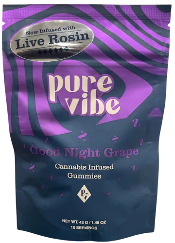 Live Rosin Good Night Grape - THC:CBDCBN Gummie 10 Pack (100mg) was found with another offer. Check them out!