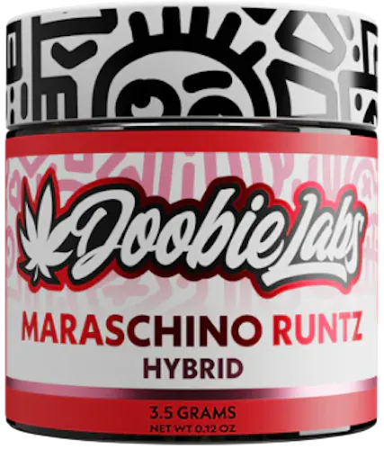 Maraschino Runtz from Doobie Labs is a premium hybrid strain celebrated for its sweet cherry-forward flavor and balanced effects. This strain is an hybrid created by crossing Kosher Tangie, Cherry Pie, and Runtz, resulting in a complex genetic profile that blends fruity sweetness with subtle spice. Its aroma is rich and layered, offering notes of freshly picked cherries, earthy florals, and a sharp menthol edge. The flavor mirrors its name, delivering a mouthwatering cherry taste with creamy vanilla undertones and a candy-like finish, making each inhale smooth and indulgent. It provides a potent yet well-rounded high: an uplifting euphoria that enhances mood and creativity, followed by a mellow body buzz that eases tension without heavy sedation.