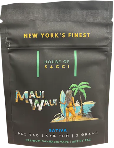 House of Sacci’s 2g Maui Waui strain is a classic sativa celebrated for its tropical flavor and uplifting effects. Maui Waui (sometimes called Maui Wowie) is a legendary strain that originated in Hawaii in the 1970s, and House of Sacci cultivates it with their premium greenhouse methods to preserve its nostalgic character. The strain is known for its sweet pineapple and citrus-forward flavor profile, layered with subtle tropical and herbal notes that transport the palate straight to island vibes. Consumers often report feeling uplifted, relaxed, and optimistic, without the heavy sedation of indica strains.