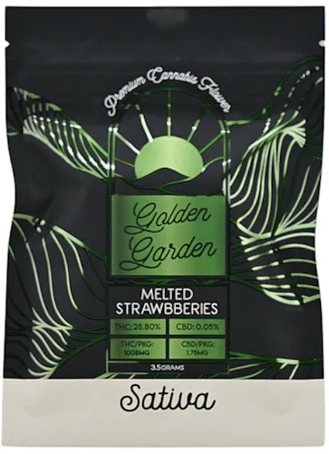 The sativa-labeled Melted Strawberries from Golden Garden delivers a bright, juicy, and uplifting expression of the strain, leaning harder into its energetic fruit notes. The aroma opens with fresh strawberry pulp, tangy red berry, and a splash of citrus zest, giving it a lively, almost sparkling quality. Underneath the fruitiness sits a faint layer of herbal sweetness and light earth, just enough to keep the profile grounded without dulling its vibrancy. On the inhale, it’s sharp and refreshing—sweet strawberry candy with a hint of tropical acidity—while the exhale brings a smooth, creamy finish that feels like melted strawberry gelato. The effects match the sativa label: uplifting, clear-headed, and mood-brightening, offering a gentle cerebral buzz that encourages focus and creativity while keeping the body light and relaxed.