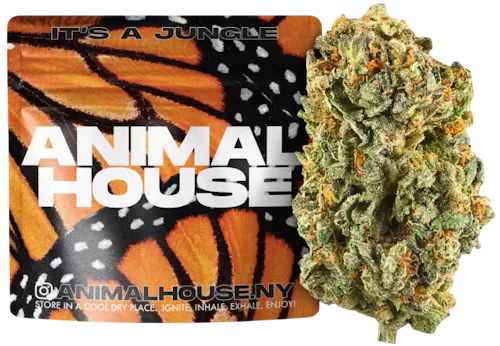 Mystery Made II from Animal House is known for its dense, resin-heavy buds and a deep, moody aroma that blends dark fruit tones with earthy, herbal undertones. The flowers often display rich greens accented by subtle purples, all wrapped in a thick layer of trichomes that signal its potency. Its scent carries a mix of berry sweetness, forest floor depth, and a faint hint of spice, creating a profile that feels both bold and grounded. It leans into a soothing, body-forward calm that builds gradually, offering physical ease without immediately locking the user into stillness.