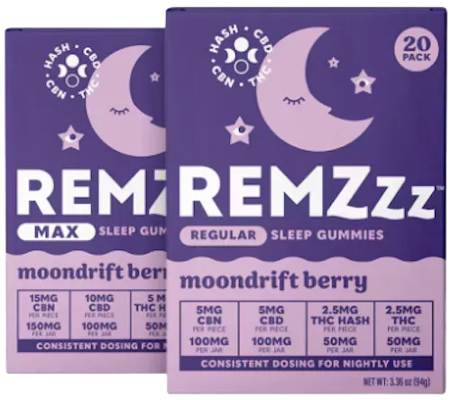 Moondrift Berry gummies by REMZzz are formulated as a nighttime, indica-leaning edible, blending CBN, CBD, hash infusion, and THC to promote relaxation and support REM-stage sleep. Their flavor profile is a rich berry medley, combining the juiciness of blueberry, raspberry, and blackberry with a subtle hint of sweet strawberry, creating a vibrant, fruit-forward taste that’s both soothing and satisfying. The gummies are typically sold in 20-count packs, with cannabinoid ratios such as 100mg CBD + 50mg THC or CBN:CBD:THC blends, depending on the retailer. This berry-rich profile is designed to complement the calming effects, offering a sensory experience that helps quiet the mind and relax the body as the cannabinoids gradually take effect. Users often describe the onset as gentle and comforting, making Moondrift Berry a popular choice for winding down in the evening and preparing for a restorative night’s sleep.