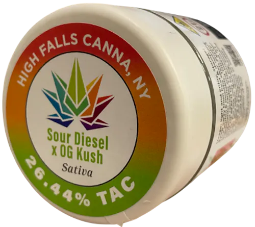 High Falls Canna’s Sour Diesel x OG Kush brings together two legendary cultivars into a hybrid that feels both energizing and soothing. The aroma opens with sharp diesel, lemon zest, and skunky citrus, followed by deeper earthy, piney, and herbal kush undertones. The flavor mirrors the scent—bold, gassy, and slightly sour with a smooth exhale. The effects typically begin with a fast-acting mental lift, sharpening focus and boosting mood, while the OG Kush lineage adds a warm, relaxing body sensation that prevents the high from becoming too racy. This makes it a versatile strain for daytime or early evening use, especially for users seeking creativity, stress relief, or a functional high that still carries weight.