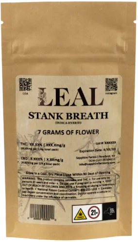 Stank Breath is an indica-hybrid strain made by crossing Sharksbreath and OG Kush. Like its name suggests, this bud has a super heavy and pungent aroma and flavor that's dank, musty and sour with a punch of deep black pepper. Stank Breath hits you almost instantly, filling your brain with a happy lifted sense of euphoria. As you soar higher, a soothing body tingle will begin to wash over you, lulling you into a state of pure relaxation and ease eventually into a fully sedated and couch locked state
