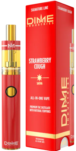 Strawberry Cough by Dime Industries is a sativa strain celebrated for its sweet berry flavor, uplifting effects, and nostalgic appeal. The flavor is a nostalgic blend of fresh strawberries layered over a pungent skunk base, designed to invigorate the senses and leave a lasting impression