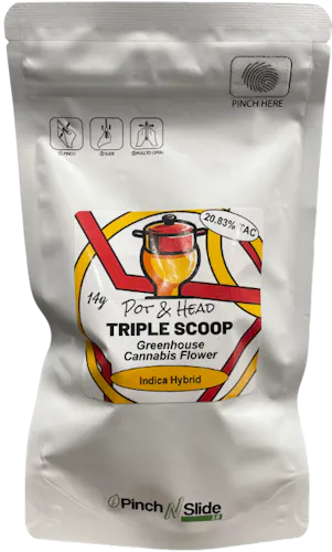 Triple Scoop serves up sweet, creamy terps with just the right amount of lift to keep you smiling. Perfect for sessions that stretch into the afternoon without slowing you down. This strain packs both flavor and vibe, making it a crowd-pleaser that’s built for sharing.