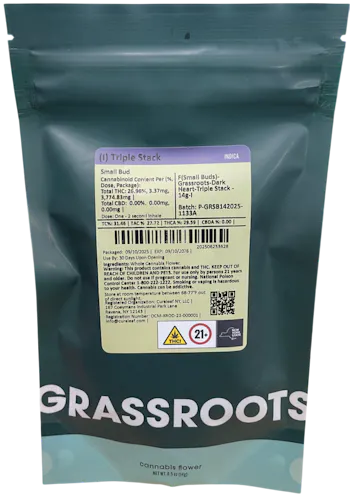 Triple Stack by Grassroots is a potent indica celebrated for its decadent dessert-like flavor profile and deeply relaxing effects, making it a go-to strain for evening use and stress relief. Part of Grassroots’ Dark Heart Collection, Triple Stack is a small-batch, in-house cultivar bred for flavor and potency, which contribute to its complex aroma of sweet dough, toasted nuts, warm vanilla, and subtle spice. On the inhale, users often note a thick, doughy flavor reminiscent of caramel-soaked pancakes, while the exhale smooths into a cool, creamy finish with hints of berry and earth.