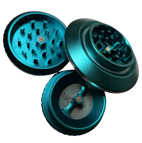 The UFO Rolls Turquoise Aluminum Herb Grinder is a premium 3-piece design measuring 2.75" with a precision 2.2" grinding chamber.